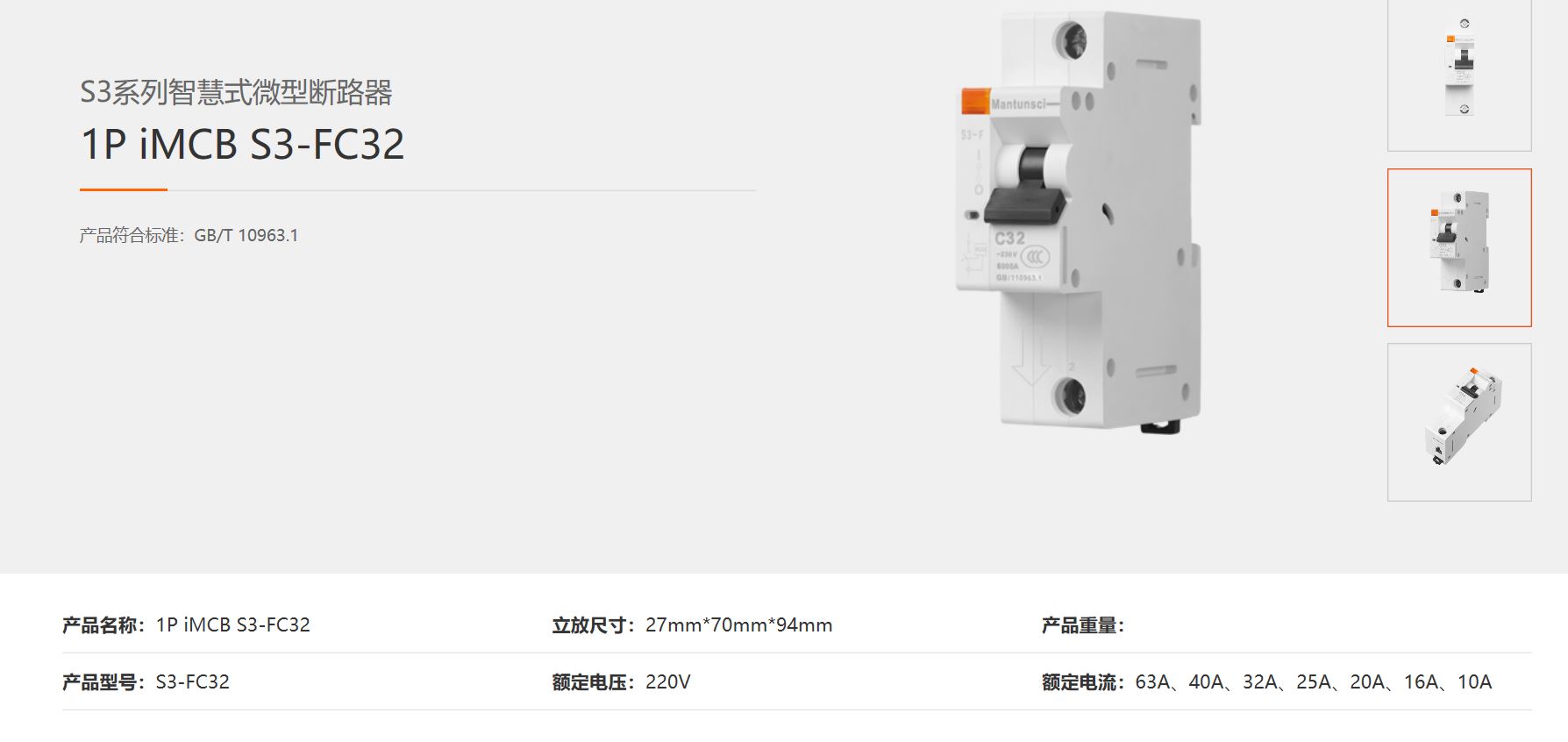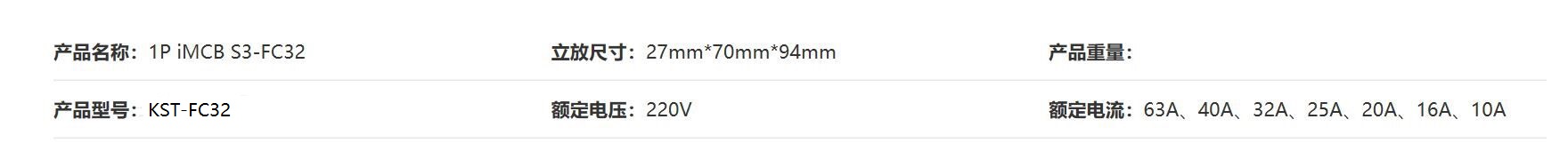 · 产品名称:1P iMCB S3-FC32